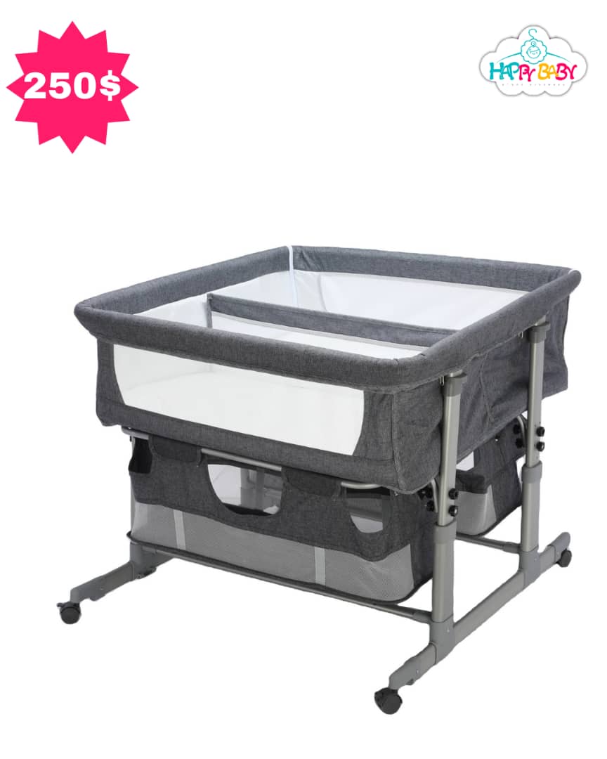 Le berceau cododo jumeaux offre deux espaces séparés mais rapprochés pour accueillir les bébés en toute sécurité. Réglable en hauteur, confortable et ventilé, il facilite l’allaitement et les soins nocturnes. Parfait pour les parents de jumeaux recherchant proximité et organisation.