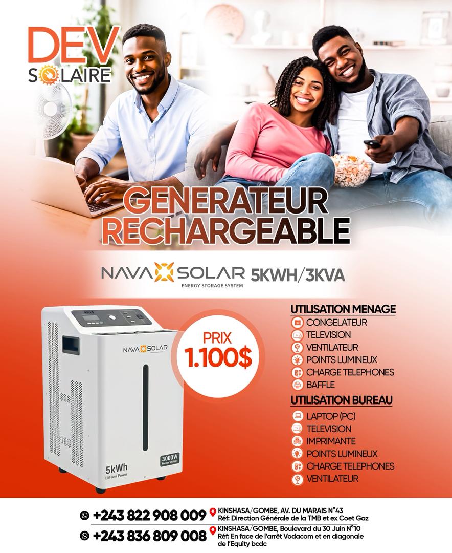 Le générateur rechargeable est un appareil indispensable pour fournir une énergie fiable partout où le courant électrique manque. Compact et portable, il peut alimenter divers appareils tels que téléphones, lampes, ventilateurs ou petits équipements électroniques. Grâce à sa batterie rechargeable intégrée, il offre une autonomie prolongée et peut être rechargé via prise secteur, panneau solaire ou voiture. Facile à transporter et à utiliser, ce générateur est idéal pour la maison, le camping, les voyages ou les situations d’urgence. Écologique et économique, il permet de bénéficier d’une source d’énergie autonome tout en réduisant la dépendance au réseau électrique traditionnel.