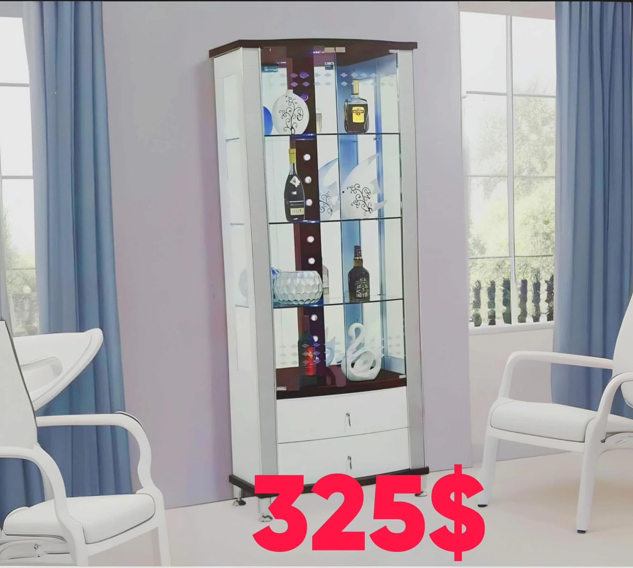Fabriquée avec des matériaux de qualité, cette vitrine est stable et durable. Ses étagères supportent livres et objets décoratifs, et le meuble reste facile à entretenir pour un usage quotidien.